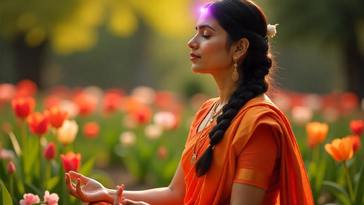 Feche os olhos, visualize uma luz violeta ou branca brilhando no centro da testa, e respire profundamente. Isso ativa o fluxo energético da região frontal.